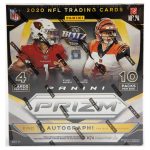 Showcasing the league’s stars with Optichrome technology, 2020 Panini Prizm Football continues the long-running NFL product. The expected Mega Box output is one autograph.